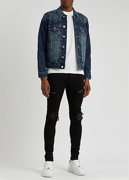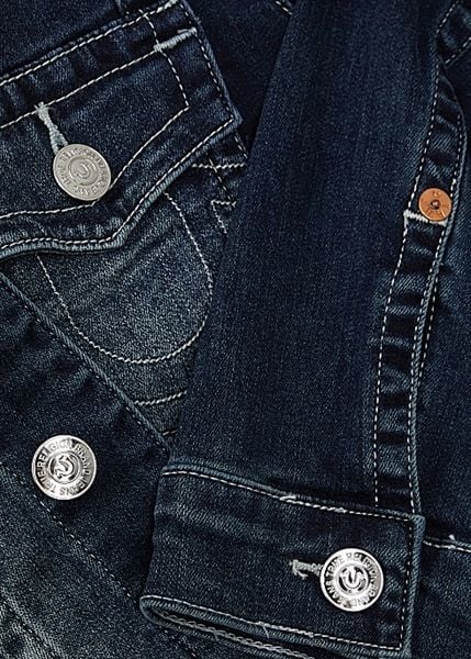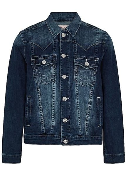 Áo Khoác Jeans True Religion Denim Trucker Jacket Máu Xanh Đậm Medium Wash