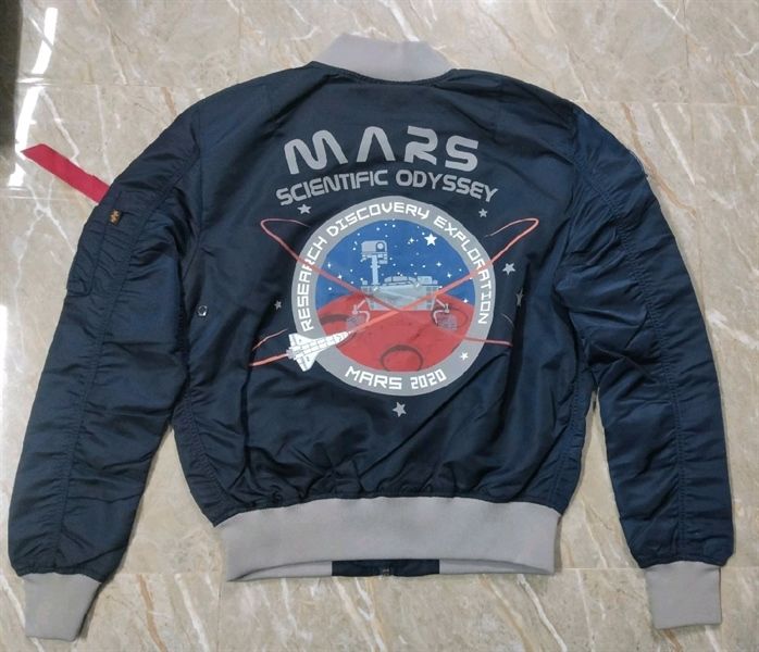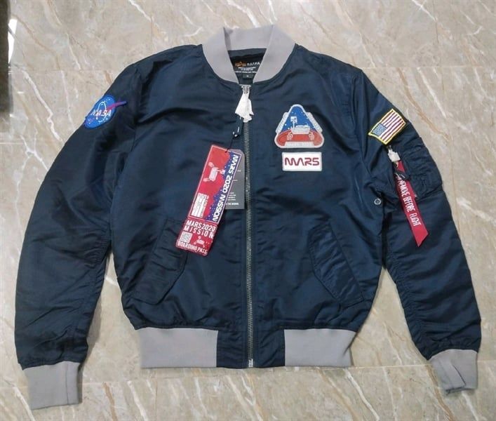 Áo khoác mỏng bomber Alpha Industries MA-1 LW Mission to Mars màu xanh dương có logo.