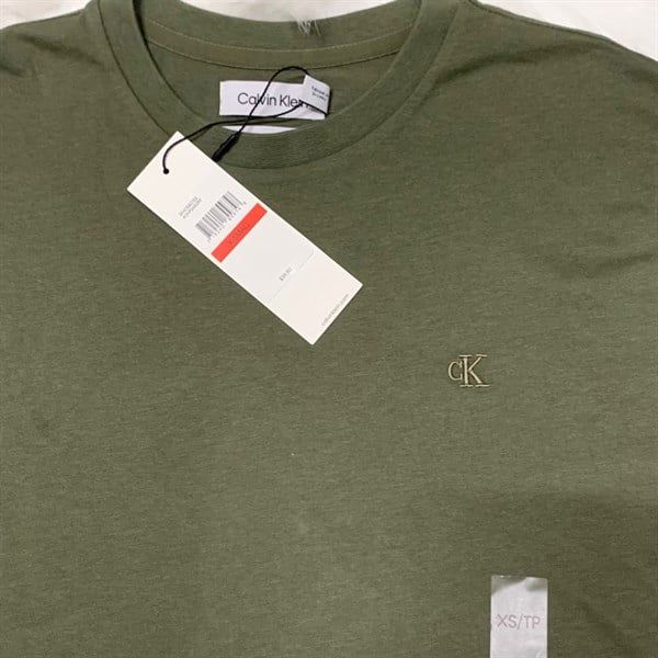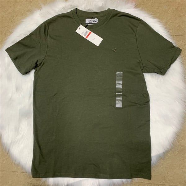 Áo Thun Cổ Tròn Calvin Klein, Smooth Cotton Tay Ngắn, Màu Olive