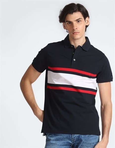 Áo Thun Polo Tommy Hilfiger Horizzon Stripe Màu Xanh Đen Đậm, Dáng Slim Fit