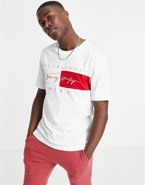 Áo Thun Tommy Hilfiger Relaxed Fit Signature Flag Màu Trắng