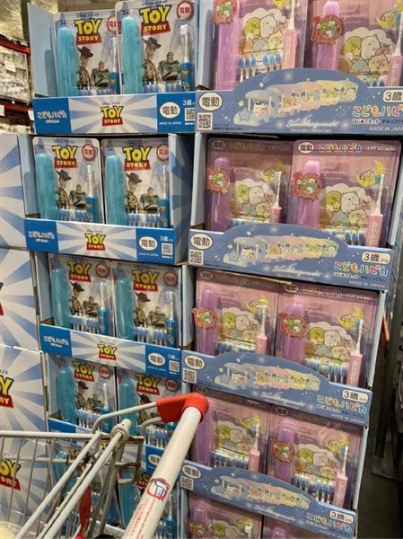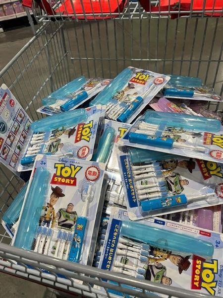 Set Bàn Chải Pin Cho Bé Nhật Bản, 7 Đầu Chải Và 1 Hộp Đựng Màu Xanh Toy Story