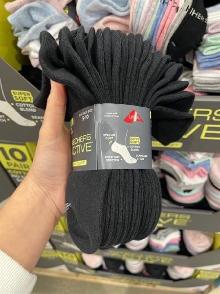 Set Vớ Cổ Ngắn Skechers Active 10 Đôi Màu Đen