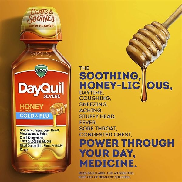 Siro Cảm Ho Vicks DayQuil Severe Honey Cold & Flu 354ml