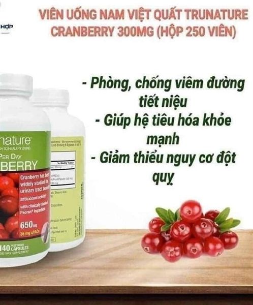 Viên Uống Hỗ Trợ Đường Tiết Niệu Trunature Cranberry Mỹ, 140 Viên